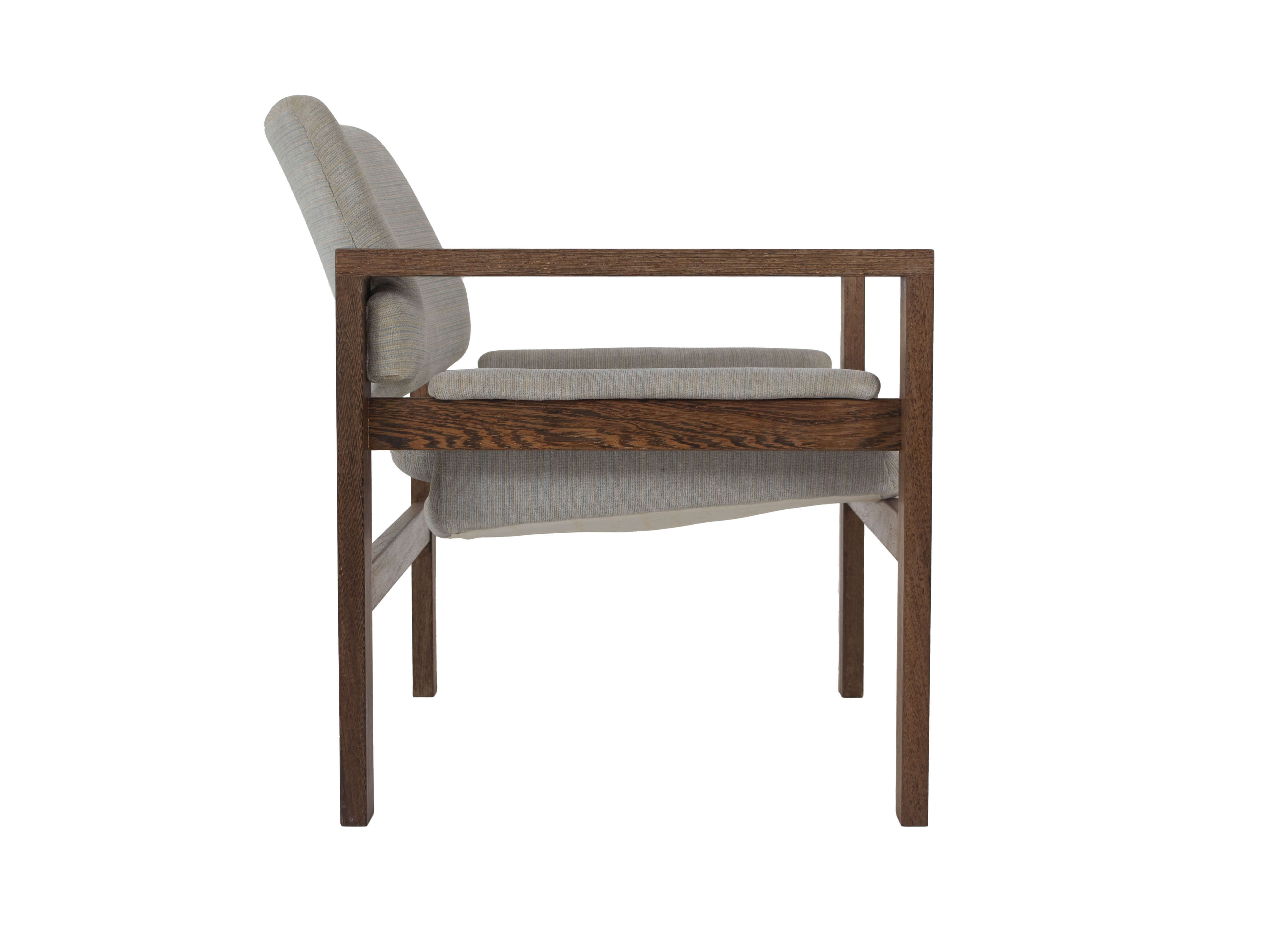 Minimalistic Arm Chair Attributed to Martin Visser 't Spectrum, The Netherlan. The wooden frame is minimal and has an angular shape. The contrast of the wood and seating area is very nice. The shape of the fabric cushion is nicely overhanging the frame. The chair is in good condition, but would benefit professional cleaning or re-upholstery, which we can arrange.