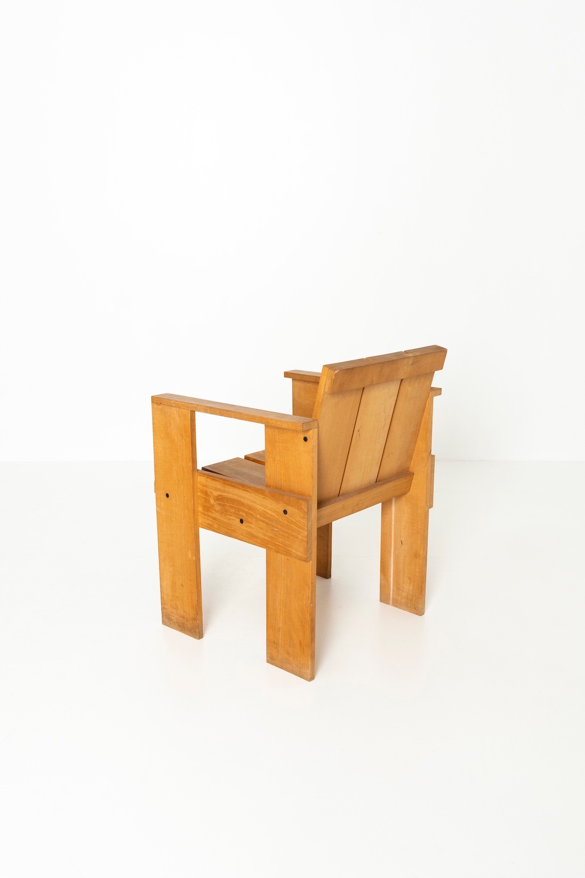 Nice Gerrit Rietveld 'Crate' chair. This chair is designed in 1934, however, we think this is a Cassina edition from the 1970s. This chair is made out of ash wood and has a colorless lacquer.