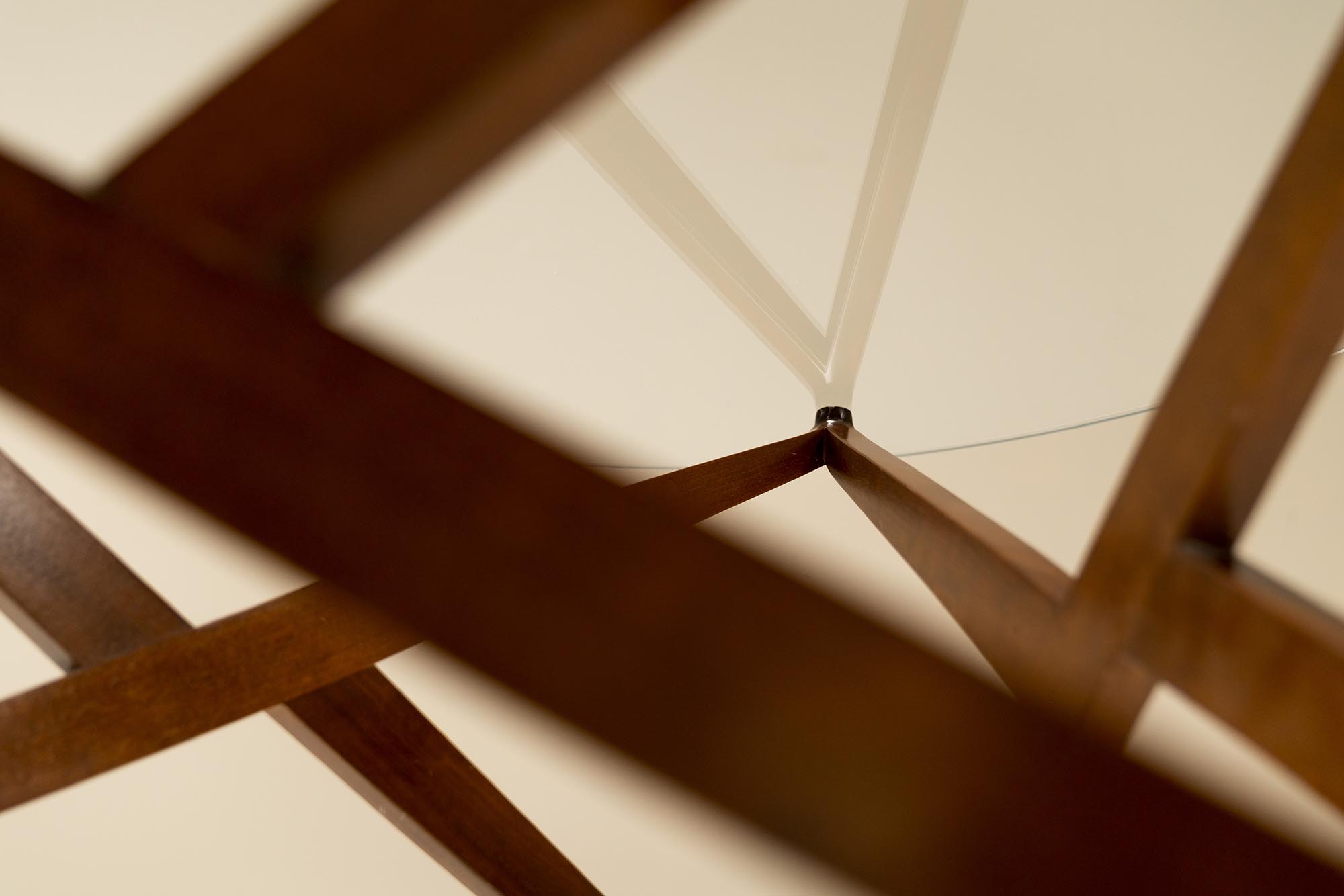 Rare Italian Modern Round Coffee Table with Glass Top by Angelo Ostuni, Italy 1960s. This table has an unique star-shaped, wooden, base that gives this table an amazing look and feel. It is a great example of the design during the 1960s in Italy; functionality combined with elegance and interesting shapes. The table is in very good condition.