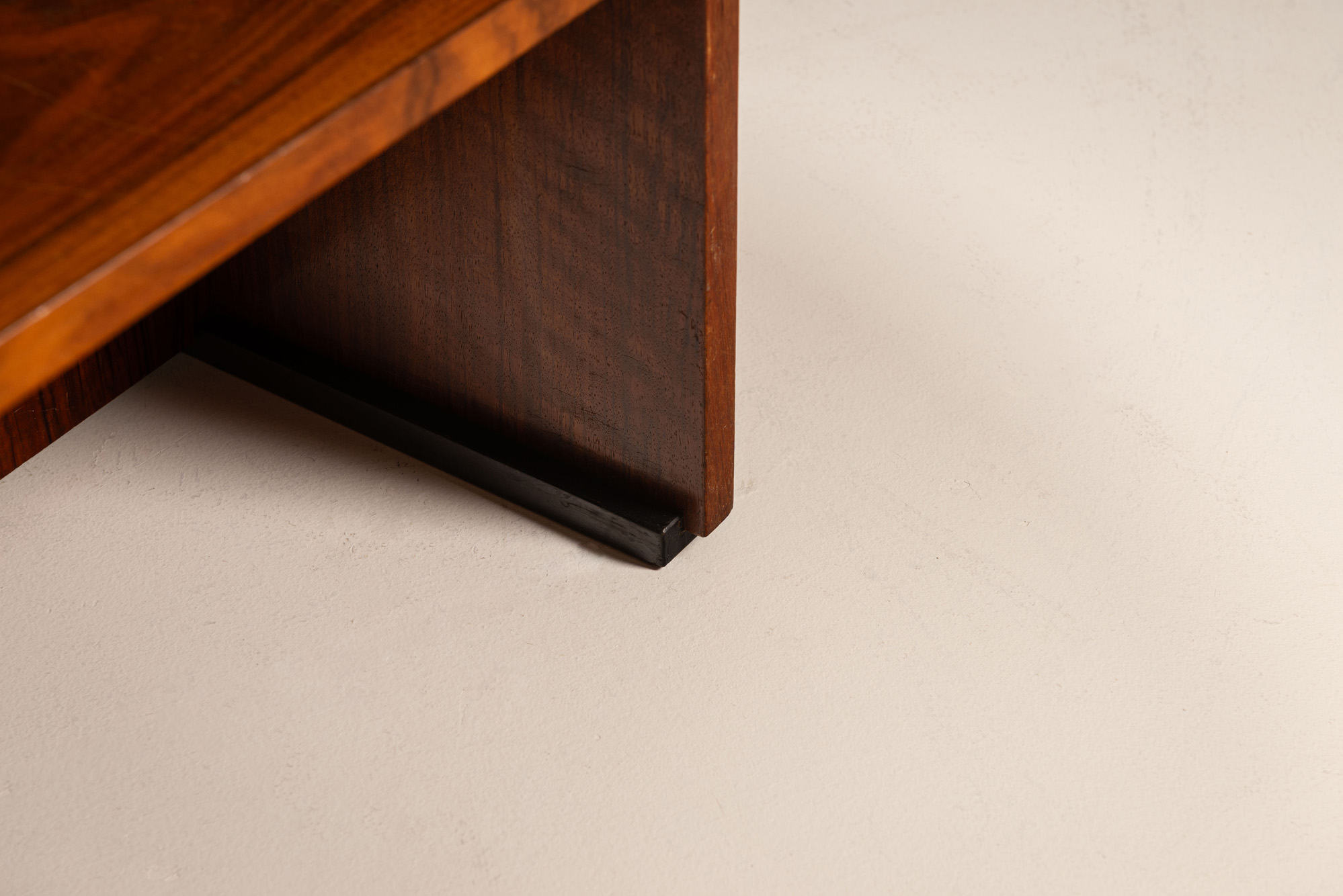 In good condition, with light signs of age and use. The tabletop shows minor surface scratches and some veneer wear, but retains its warmth and presence.