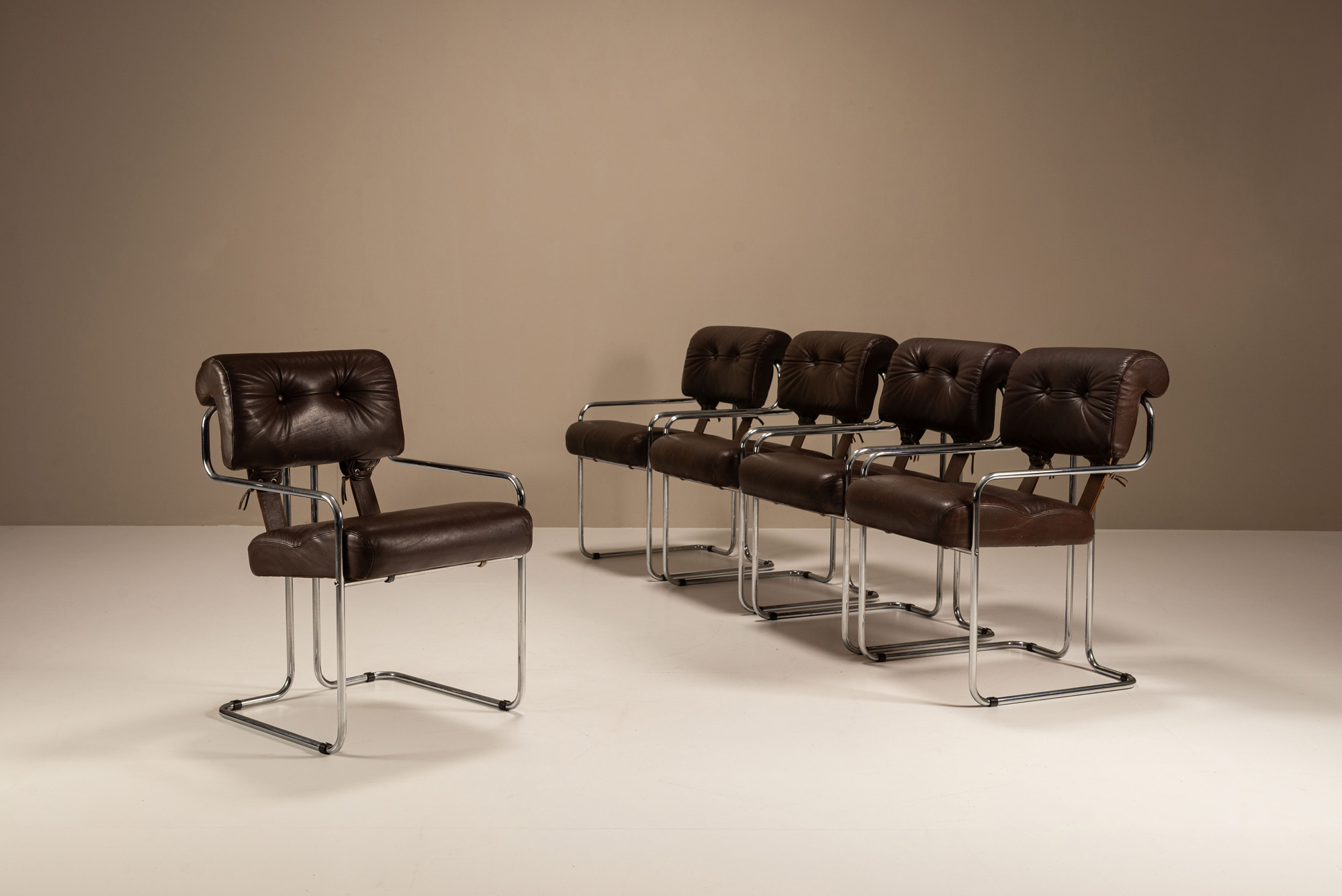 These chairs are a delightful example of the Italian design craze of the 1970s and have stood the test of the time flawlessly. A laidback look combined with a wealth of comfort. The condition of these chairs is very good with only minor traces of usage.