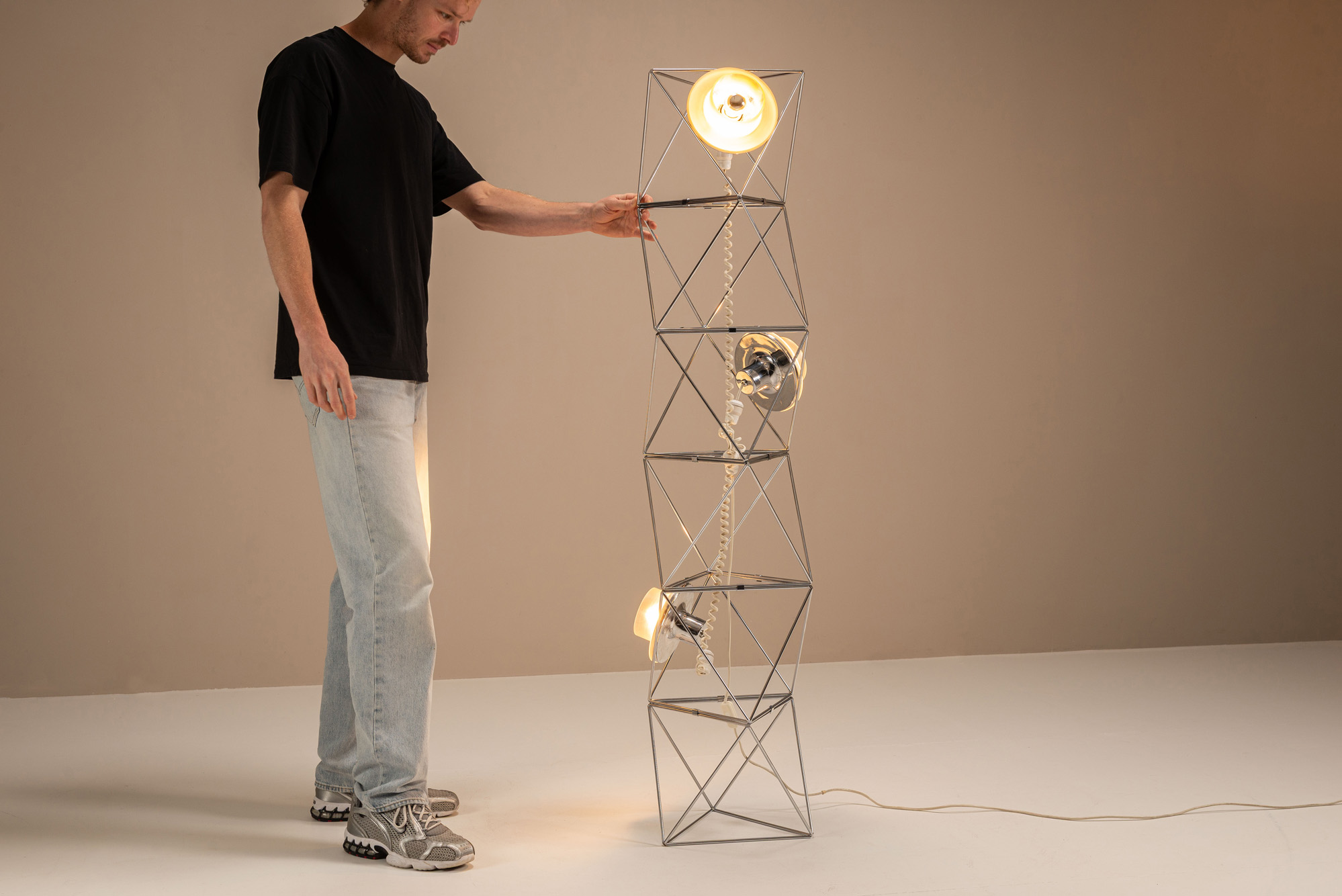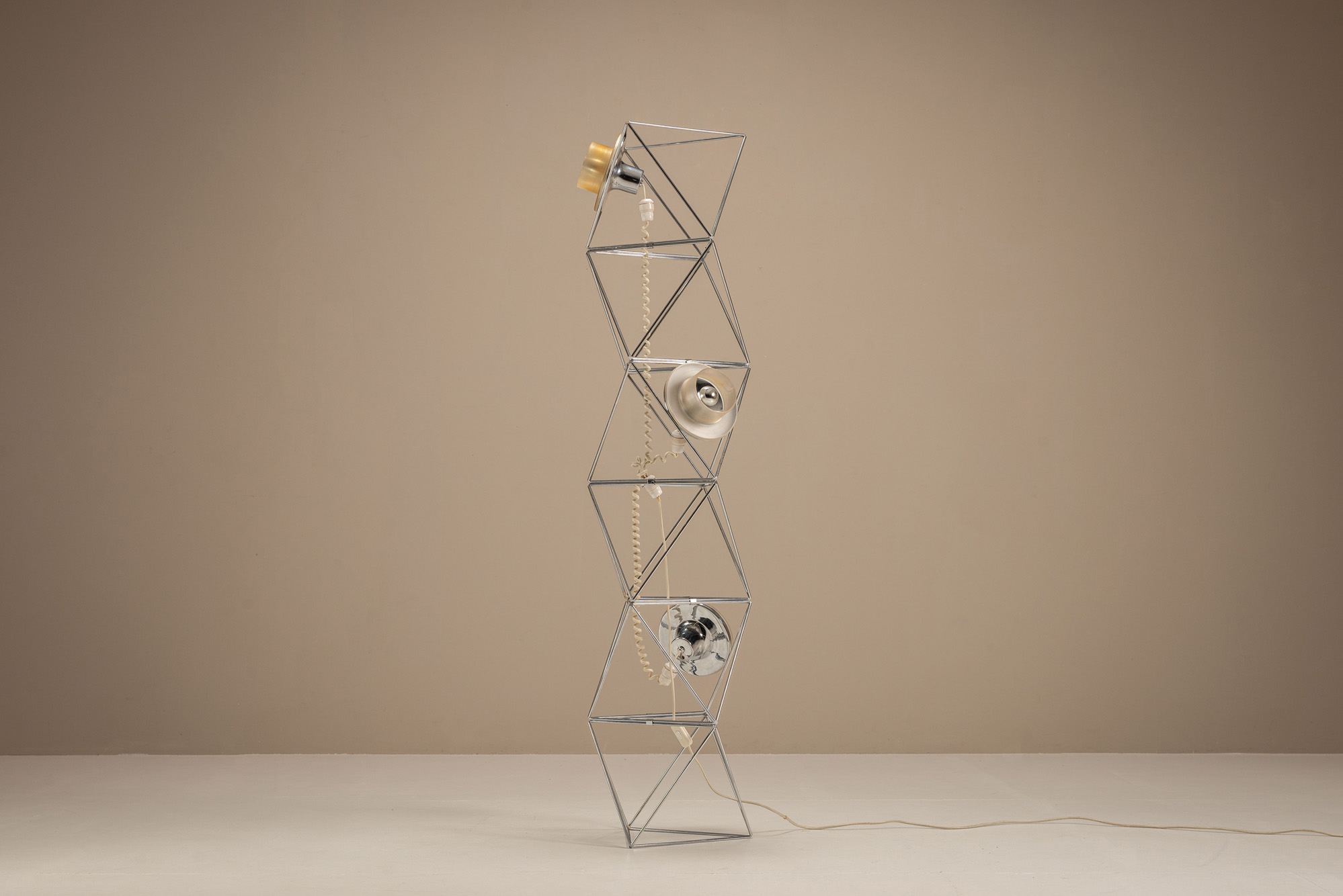 Gino Vistosi was a visionary Italian designer known for his innovative approach to glasswork, particularly in the realm of lighting design. Born into a family with deep roots in the Murano glassmaking tradition, Vistosi seamlessly blended contemporary aesthetics with the ancient art of glassblowing. His works are celebrated for their sculptural forms, clean lines, and the delicate balance between function and art, making them timeless pieces in modern interior design.