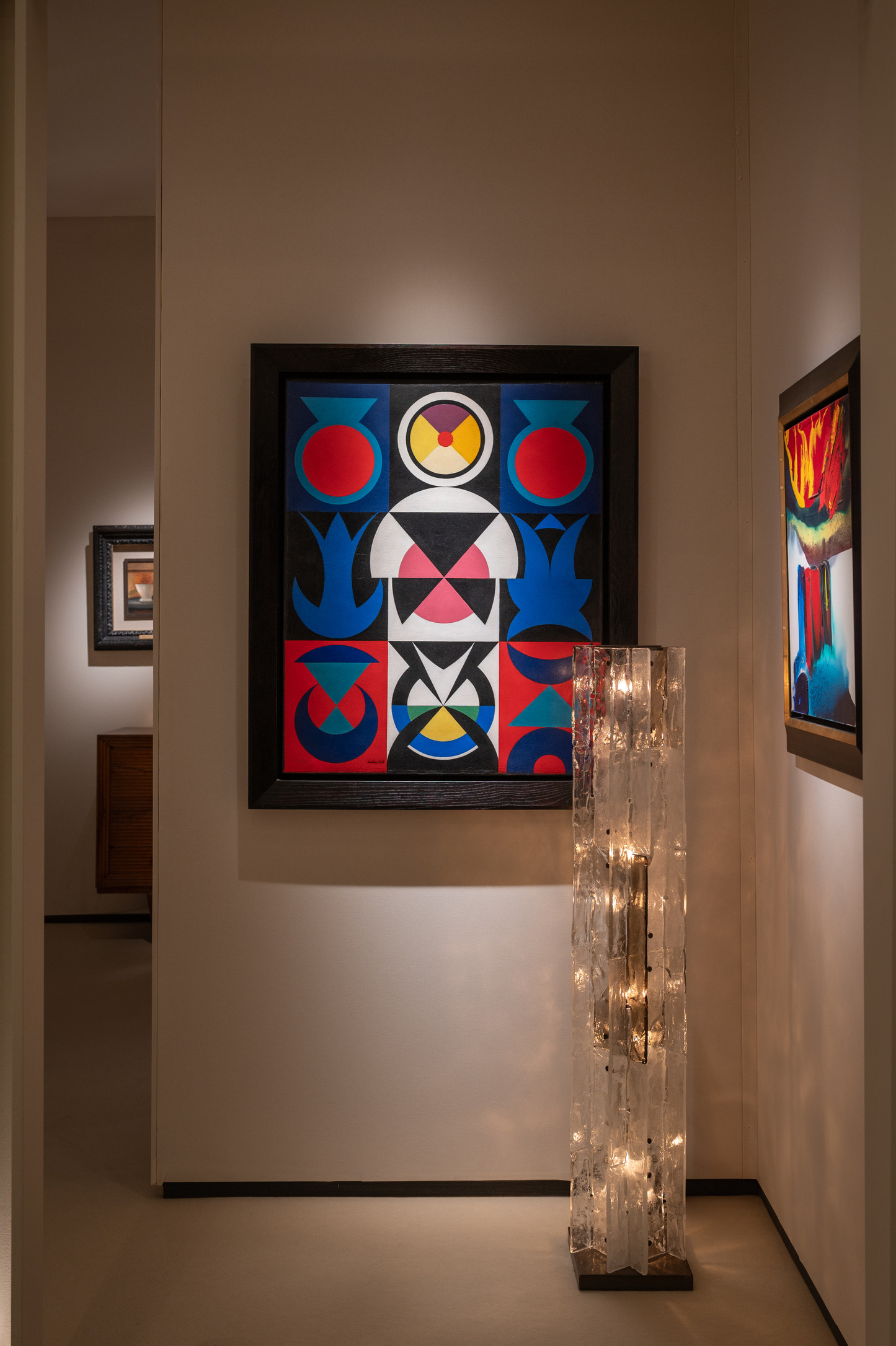 The logic of this composition is informed by Herbin’s “plastic alphabet,” a visual grammar he developed in the 1940s to associate letters, colours, and forms in a system of abstract communication. This painting likely reflects such an approach, although its exact symbolic decoding may remain elusive. Nevertheless, the result is visually dynamic and rhythmically coherent, reflecting Herbin’s lifelong dedication to harmony, proportion, and the autonomous power of colour.